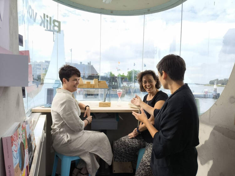 Dordrecht kent als rivierenstad een groot aantal brugwachterhuisjes, die tegenwoordig ook te huur zijn. Eentje daarvan, gelegen aan de Prins Clausbrug, is door Bibliotheek AanZet gehuurd en omgedoopt in Blik Vooruit. Dit huisje, een miniatuurversie van het Dordthuis, is een plek waar inwoners, buurtgenoten, beleidsmakers en ondernemers op gelijkwaardige wijze met elkaar in gesprek kunnen gaan over wat er speelt in de stad. Onverwachte ontmoetingen in de smallest third place of the world, want in Blik Vooruit is er plek voor hooguit drie personen. Ondanks die beperkte ruimte wordt er door het publiek volop gebruik van gemaakt.’ Het initiatief kreeg een eervolle vermelding bij de internationale Changemaker Awards 2025 tijdens het Next Library Congress in Dokk 1 in Aarhus.