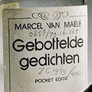 Er zijn in de KB nogal wat flessen op de planken te vinden, bijna allemaal van Vlaamse herkomst en met een poëtische inhoud, zoals gedichten van Marcel Van Maele en Maarten Inghels.