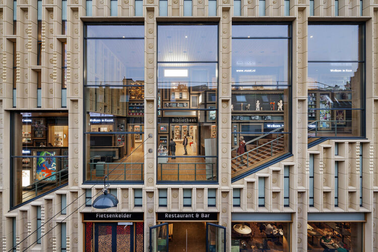 De bibliotheek is in Rozet te vinden op hoger gelegen etages. Je collega Peter Kok uit Tilburg zei tegen de architecten toen zij de plannen voor de LocHal ontvouwden: ‘Geen sprake van dat de bibliotheek op de eerste verdieping komt. De bieb komt op de begane grond en nergens anders. Voor iedereen moet direct duidelijk zijn dat dit een bibliotheek is.’