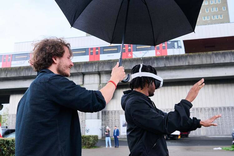 Preview met VR-bril op van het toekomstige OBA Lab waar onderwijsprogramma TUMO komt.