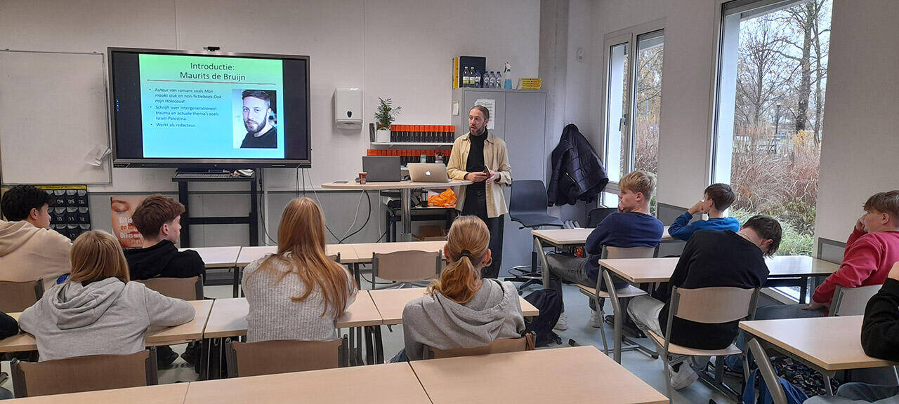 Een paar maanden vóór zijn bezoeken aan de scholen heeft Maurits samen met Esther een lesbrief gemaakt voor de Zeeuwse scholen. ‘Dit is als het ware een handleiding hoe de docenten het onderwerp kunnen behandelen in de klas,’ belicht Esther. ‘Daarbij hebben ze uiteraard de vrije keuze aan welk vak ze dit willen koppelen. In dit geval bijvoorbeeld aan burgerschap, mens en maatschappij, geschiedenis. Of aan Nederlands, want er is natuurlijk ook een link met leesbevordering.’