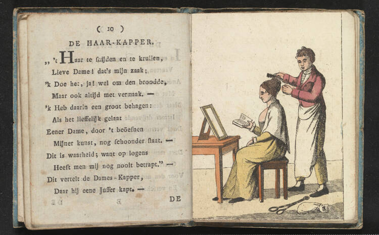 ‘De haar-kapper’, uit: Printjes almanach voor kinderen, 1822, p.10.
