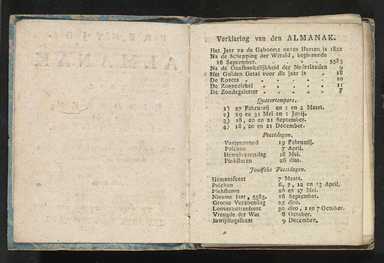 ‘Verklaring van den almanak’ in het exemplaar voor 1822.
