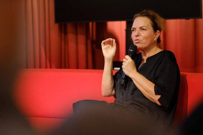 Marleen Stikker (voorloper in de digitale revolutie en de open technologiebeweging, directeur van De Waag in Amsterdam) in 2022 tijdens het symposium over de bibliotheek van de toekomst in Pakhuis de Zwijger.